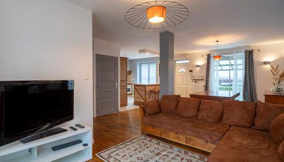 Das Ferienhaus verfügt über fünf Schlafzimmer, ein Wohnzimmer mit TV, sowie eine gut ausgestattete Küche mit Kühlschrank und Geschirrspüler. Es sind zwei Badezimmer mit Dusche vorhanden. In der Unterkunft werden Handtücher und Bettwäsche bereitgestellt.