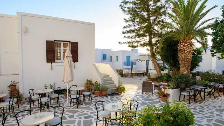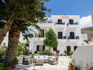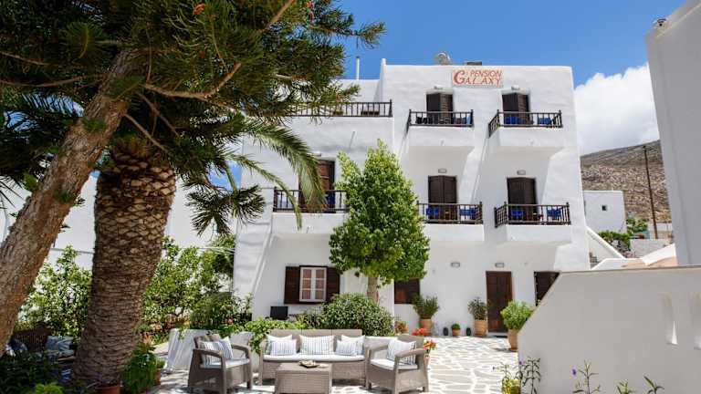Das Hotel Galaxy ist nur 200 m vom Strand Aegiali und dem Hafen entfernt. Es befindet sich in einem ruhigen, kleinen Garten mit einer weitläufigen Sonnenterrasse und Sitzgelegenheiten. Geschäfte und Tavernen sind in kurzer Gehdistanz erreichbar. Der Hafen von Katapola liegt etwa 21 km entfernt, und es wird ein kostenfreier Transfer vom und zum Hafen von Aegiali angeboten.