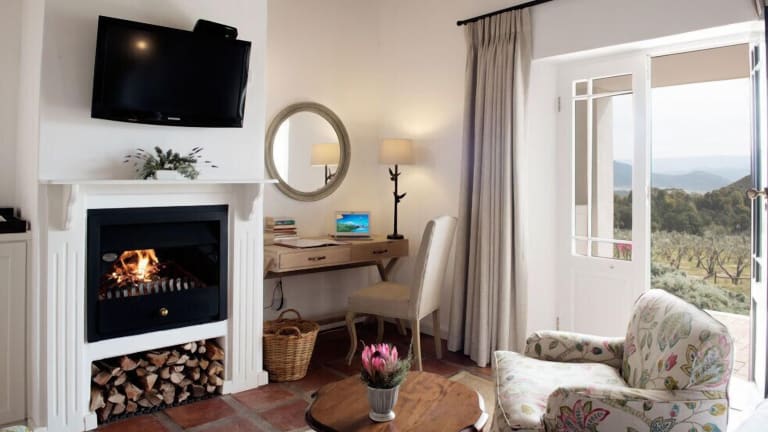 Die Zimmer im Galenia Estate sind komfortabel und bieten eine gemütliche Atmosphäre für einen erholsamen Aufenthalt. Jedes Zimmer verfügt über eine eigene Terrasse mit herrlicher Aussicht auf die umliegenden Berge und Landschaften. Die Badezimmer sind mit einer beheizten Badewanne und einer Außendusche ausgestattet, damit Sie den Blick auf die Natur während des Duschens genießen können. Ein Kamin sorgt für zusätzliche Gemütlichkeit, besonders während der Wintermonate.
