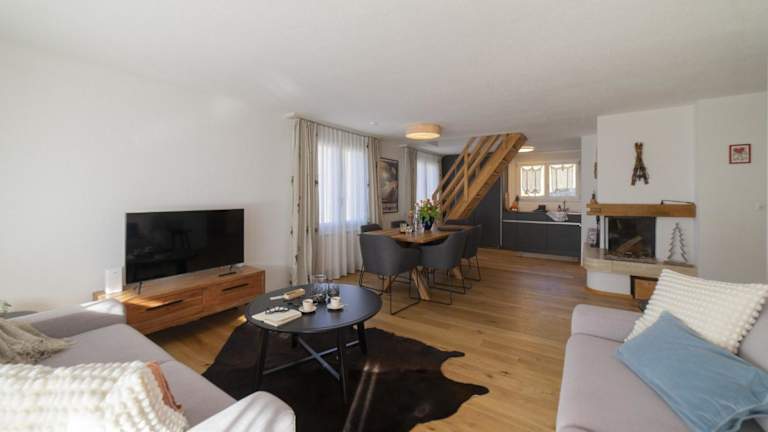 Die Ferienwohnung umfasst 2 Schlafzimmer und 2 Badezimmer. Sie ist ausgestattet mit Bettwäsche, Handtüchern, einem TV mit Satellitenkanälen, einer voll ausgestatteten Küche sowie einem Balkon mit Bergblick.