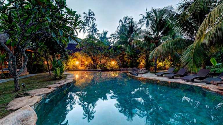 Die Ganesh Lodge befindet sich in Candidasa, einer beliebten Gegend zum Velofahren. Ubud liegt 35 km entfernt, während der internationale Flughafen Denpasar Ngurah Rai nach 52 km zu erreichen ist.