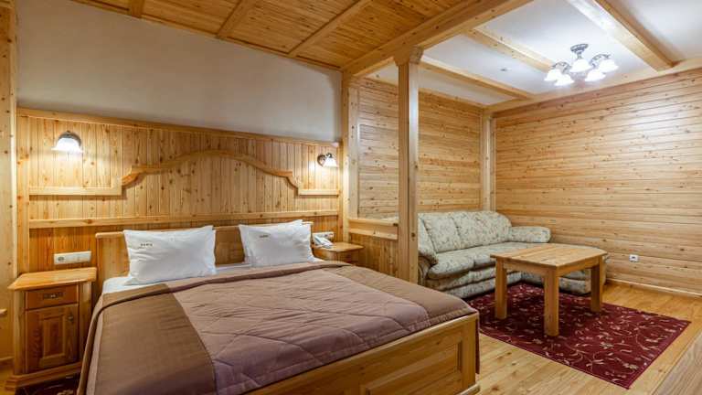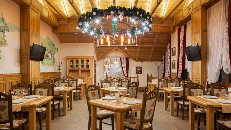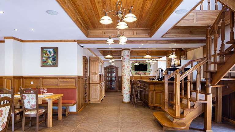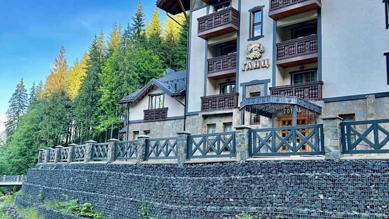 Das Ganz Hotel liegt im Skigebiet Bukovel, lediglich 80 Meter vom Skilift 5 entfernt. Eine Bushaltestelle am Skilift 1 mit Verbindungen rund um das Resort befindet sich in 700 Metern Entfernung. Der Bahnhof Iwano-Frankiwsk und der Flughafen Iwano-Frankiwsk sind in einer Entfernung von 90 Kilometern erreichbar.