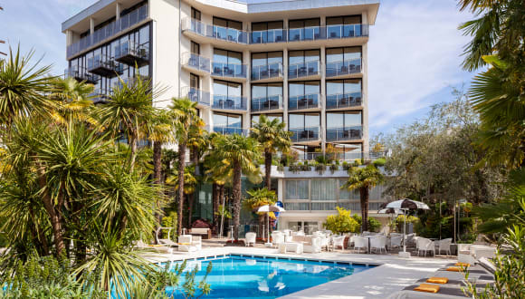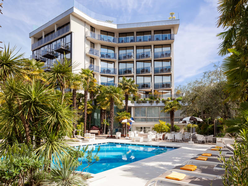 Am Aussenpool können sich die Reisenden den berühmten Gardasee-Südwind "Ora" gönnen, sich dort erfrischen und sich bestens im Schatten der Palmen erholen. Den ganzen Sommer über bieten wir an unserer Poolterrasse auch wöchentliche Livemusik Events an für entspannende und spassige Abende unter Freunden.