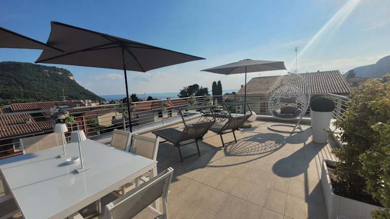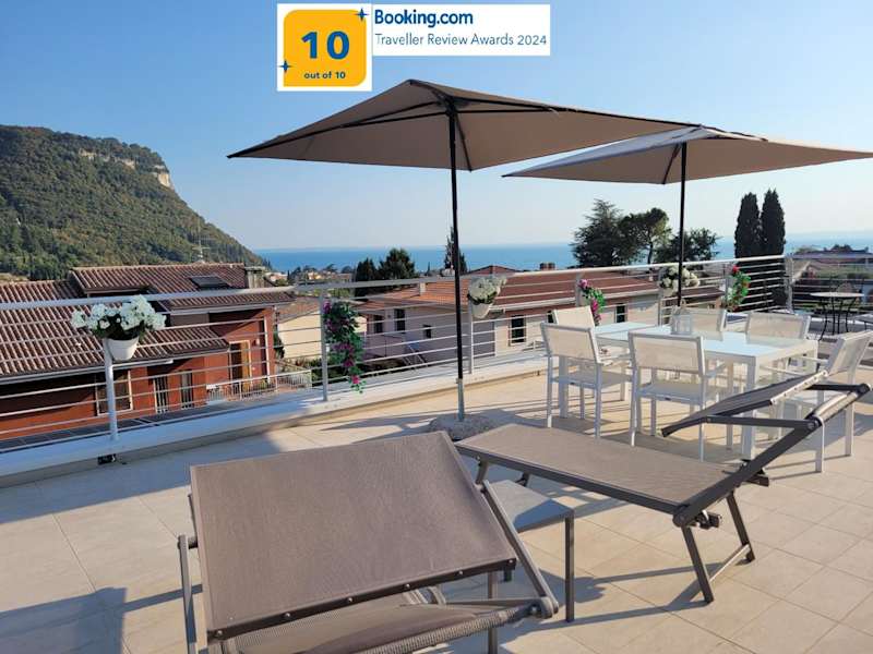 Garda view - Nuovo appartamento con solarium vista lago bietet Übernachtungsmöglichkeiten in einer modernen Ferienwohnung mit zusätzlichem Solarium und Blick auf den See. Die Unterkunft verfügt über kostenlose Fahrräder, eine Terrasse sowie einen kostenlosen Privatparkplatz und bietet zudem kostenloses Wifi für die Gäste.