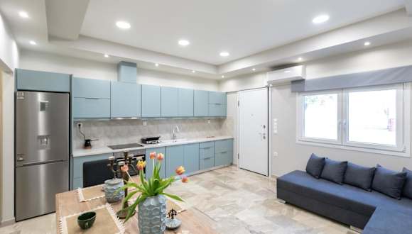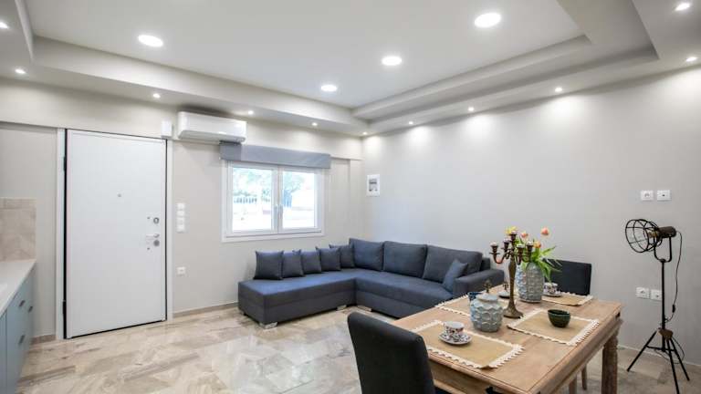 Das Garden Apartment in Amarynthos I besticht durch eine moderne und gemütliche Einrichtung mit Terrasse und Balkon.