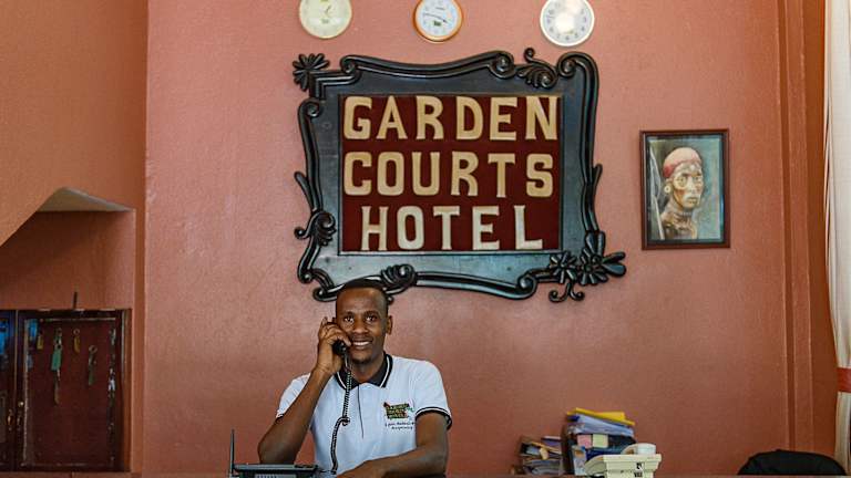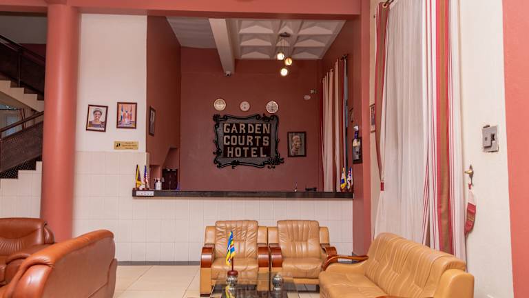 Das Garden Courts Hotel Masaka verfügt über einen Garten, eine Terrasse und eine Bar. Die Unterkunft bietet kostenloses Wifi und einen Zimmerservice. Zudem sind verschiedene Einrichtungen wie eine Sauna, ein Fitnesscenter und Konferenzräume vorhanden.
