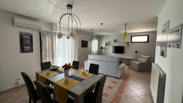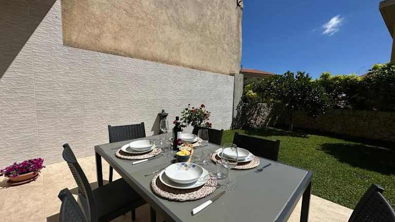 Das Ferienhaus verfügt über ein Schlafzimmer, ein Wohnzimmer und eine voll ausgestattete Küche mit Kühlschrank und Kaffeemaschine. Ein Badezimmer mit Bidet und Dusche ist ebenfalls vorhanden. Handtücher und Bettwäsche werden bereitgestellt. Die Unterkunft bietet kostenfreies WLAN. Die Klimaanlage sorgt für angenehme Bequemlichkeit.