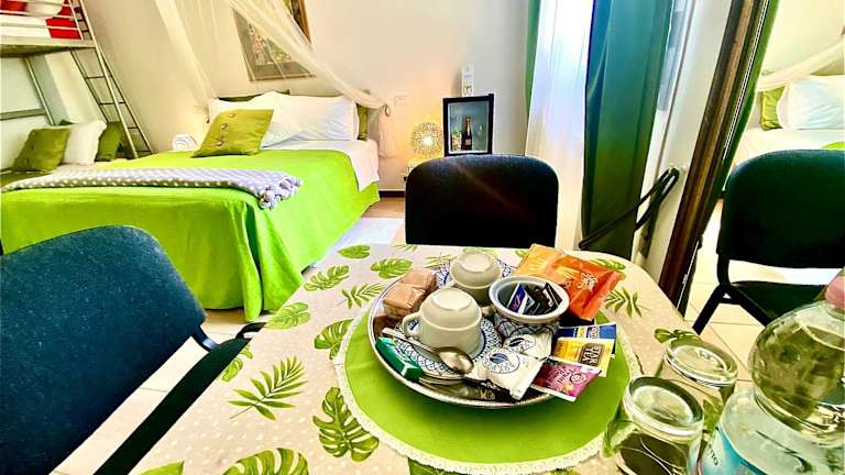 Die Gästezimmer sind komfortabel ausgestattet mit Klimaanlage, Flachbild-TV mit Kabelkanälen, Kühlschrank, Wasserkocher, Bidet sowie kostenlosen Pflegeprodukten. Jedes Zimmer verfügt über ein eigenes Badezimmer mit Dusche und Haartrockner. Mehrere Zimmer bieten zusätzlich einen Balkon. Bettwäsche und Handtücher sind in allen Zimmern verfügbar.