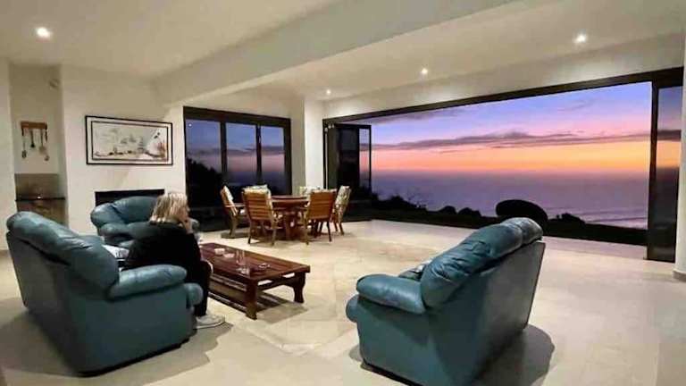 Die Villa Garden Route spectacular view over Indian Ocean bietet eine moderne und heimelige Atmosphäre mit direktem Zugang zu einer Terrasse und Garten. Diese Unterkunft ist für Gäste ab 18 Jahren geeignet und liegt direkt am Strand.