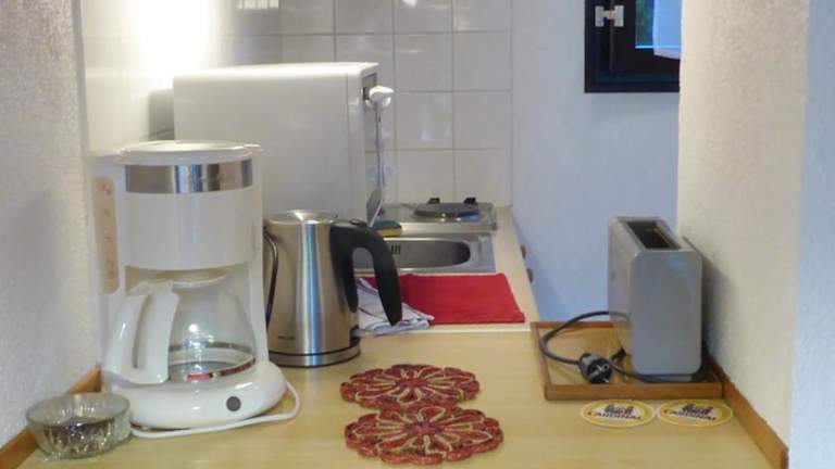 Die Ferienwohnung umfasst ein Schlafzimmer und ein Badezimmer. Zur Ausstattung gehören Bettwäsche, Handtücher, ein Flachbild-TV sowie ein Essbereich. Die voll ausgestattete Küche ermöglicht die Selbstversorgung, und die Terrasse bietet einen Blick in den Garten.