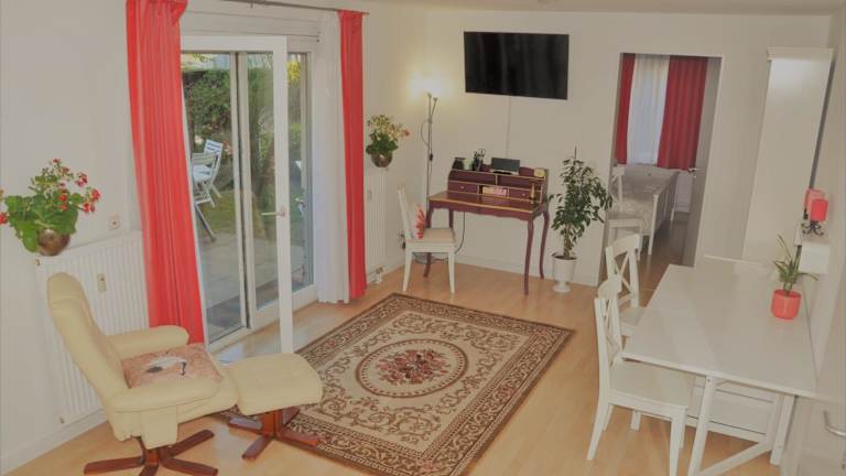 Die Ferienwohnung umfasst ein Schlafzimmer, ein Wohnzimmer mit Flachbild-TV und ein Badezimmer mit Dusche. Handtücher und Bettwäsche werden zur Verfügung gestellt. Zudem gibt es eine Terrasse mit Gartenblick.