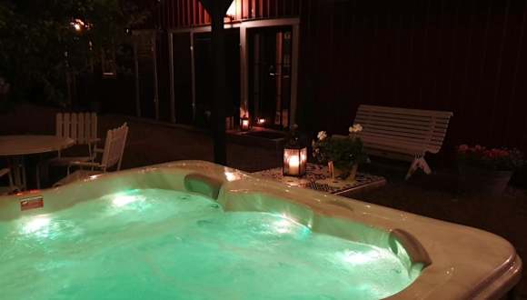 Gårdshus med spabad utomhus bietet gemütliche Übernachtungsmöglichkeiten in einem heimeligen Ferienhaus mit Zugang zu einem Whirlpool im Freien. Die Unterkunft wird von einem privaten Gastgeber geführt.