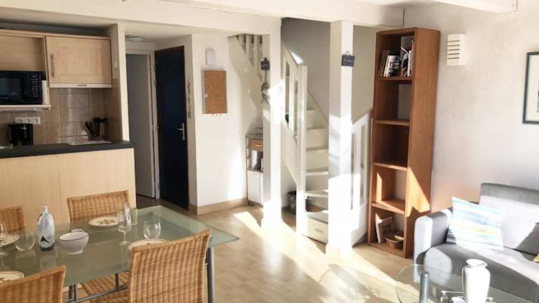 GARENNE - Duplex balcon, Plage 500m - T23 bietet Übernachtungsmöglichkeiten in einer komfortablen Duplexwohnungen mit Balkon. Die Unterkunft umfasst einen kostenlosen Privatparkplatz sowie kostenfreies WLAN und ist daher ideal für entspannte Ferien am Meer.