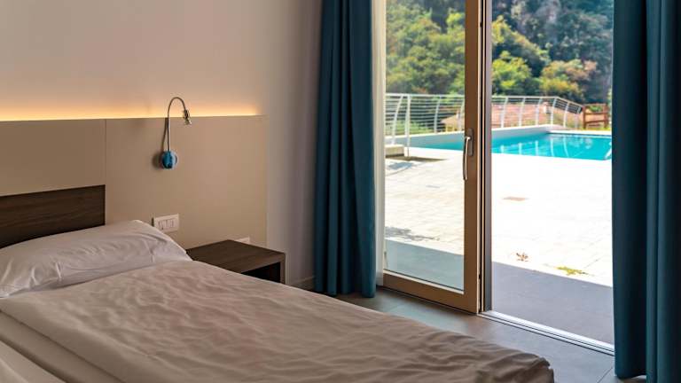 Die klimatisierten Zimmer sind ausgestattet mit einem Schreibtisch, einem Safe, einem Flachbild-TV, einer Terrasse sowie einem eigenen Badezimmer mit Bidet. Zudem verfügen einige Wohneinheiten über Meerblick und alle Zimmer sind mit einem Balkon ausgestattet.