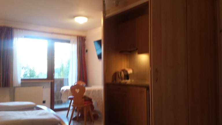 Die Zimmer sind im alpinen Stil eingerichtet und bieten Annehmlichkeiten wie Sat-TV, ein eigenes Bad, Naturholzmobiliar sowie Teppichböden oder Parkett. Einige Zimmer verfügen über einen Balkon mit Blick auf die Dolomiten. Die Apartments und Studios sind zusätzlich mit einer Küchenzeile und einem Essbereich ausgestattet.