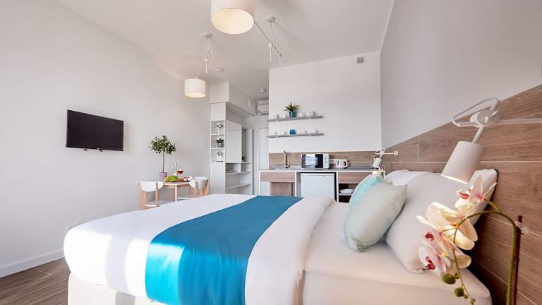 Jedes Zimmer im Garni Hotel Larimar ist mit Klimaanlage, einem Flachbild-TV mit Satellitenkanälen, einer Küche, einem Essbereich, einem Safe und einem eigenen Badezimmer mit Dusche, kostenlosen Pflegeprodukten und einem Haartrockner ausgestattet. Einige Zimmer bieten Meerblick und sind alle mit einem Balkon sowie Bettwäsche und Handtüchern ergänzt.