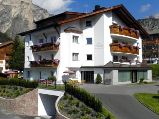 Große, kostenlose Tiefgarage und Parkplatz,Lese- und Fernsehraum,Neuer Frühstückssaal,Hausbar, Kinderspielzimmer,Skiraum: für jedes Zimmer ein eigener Schrank mit eingebautem Skischuhtrockner,Fahrrad-Depot, Aufzug,Garten mit Sonnenliegen und Sonnenterrasse