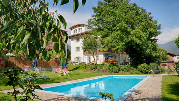 Herzlich Willkommen im gemütlichen und traditionsverbundenen Schmiedhof. Bei uns verbringen Sie Ihren Urlaub beim Wandern zwischen Obstbäumen und Bergen, am Outdoor-Pool und beim Genießen. Bei uns in Naturns scheint an 315 Tagen die Sonne. Nirgendwo sonst in den Ostalpen regnet es so selten, ja nicht einmal zwei Ortschaften weiter. Aufstehen und gleich schon der Sonne entgegenblinzeln. Danach ausgiebig frühstücken und ab in den Garten, an den Pool oder zum Wandern in die Berge. Die Möglichkeiten hier bei uns sind vielseitig. Was wäre ein Urlaub ohne ein ausgiebiges Frühstück am Morgen? Genießen Sie unser Frühstücksbuffet mit Obst und Gemüse aus dem eigenen Garten, hausgemachten Spezialitäten und allerlei Köstlichkeiten aus der Region. Unsere Gäste erhalten kostenlosen Eintritt ins Freibad und Hallenbad Naturns, welches sich nur wenige Gehminuten vom Haus entfernt befindet. Hier erwarten Sie neben Pools auch eine 500 Quadratmeter große Saunalandschaft mit Dampfbad, finnischer Sauna, Tauch- und Kneippbecken. Urlaubsreif? Sehnsucht nach einer Auszeit inmitten von Berggipfeln und Apfelblüten, bei ganz viel Sonnenschein und unzähligen Möglichkeiten der Freizeitgestaltung? Dann ist ein Urlaub bei uns vielleicht genau das Richtige. Melden Sie sich bei uns für ein unverbindliches Angebot. Falls Sie noch Fragen haben, stehen wir Ihnen selbstverständlich jederzeit gerne zur Verfügung.