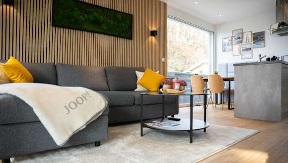 Die Ferienwohnung besteht aus einem Schlafzimmer und einer voll ausgestatteten Küche, die mit einem Kühlschrank und einem Geschirrspüler versehen ist. Zur weiteren Ausstattung gehören ein Flachbild-TV, ein Sitzbereich und ein Badezimmer mit Dusche. Handtücher und Bettwäsche werden zur Verfügung gestellt.