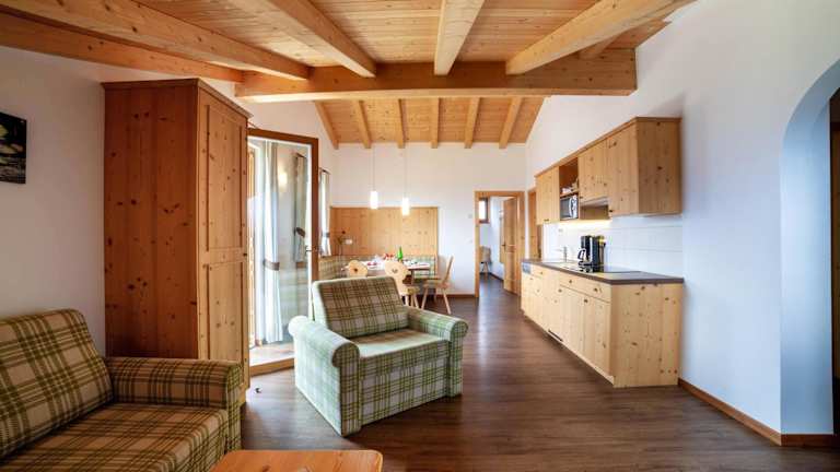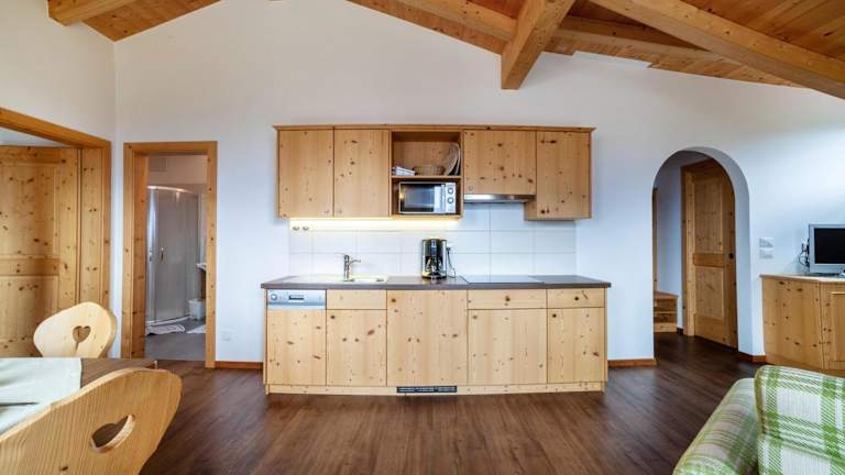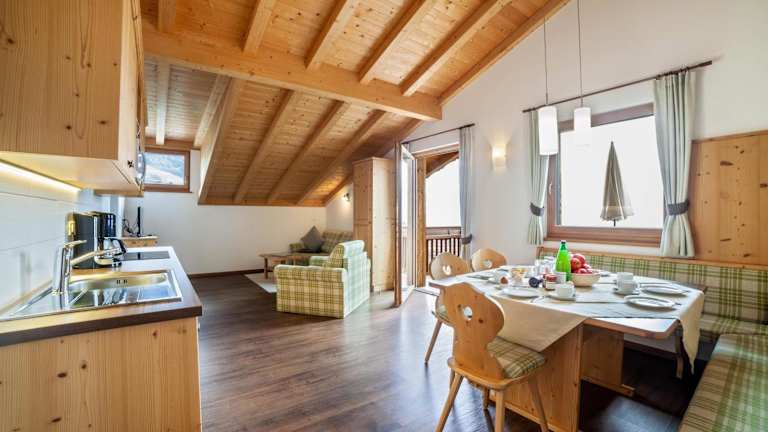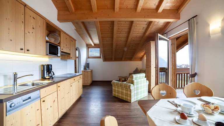 Die Ferienwohnung ist ausgestattet mit 2 Schlafzimmern und 1 Badezimmer. Zur Einrichtung gehören Bettwäsche, Handtücher und ein TV mit Satellitenkanälen. Eine voll ausgestattete Küche und ein Balkon mit Bergblick runden das Angebot ab.