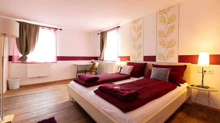 Das Restaurant im Hotel serviert bayerische Spezialitäten und bietet ein Frühstücksbuffet, das jeden Morgen am Karlsberg 18 bereitgestellt wird. Auf Wunsch sind spezielle Speisen für besondere Ernährungsbedürfnisse erhältlich. Zudem gibt es ein Café vor Ort, das Guetzli und andere Snacks anbietet.
