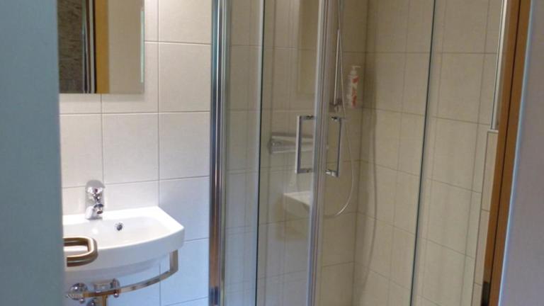 Jedes Zimmer im Gasthaus Heiligkreuz ist ausgestattet mit einem eigenen Badezimmer, kostenfreien Pflegeprodukten, einem Haartrockner sowie einer Dusche. Zudem sind Bettwäsche und Handtücher bereitgestellt.