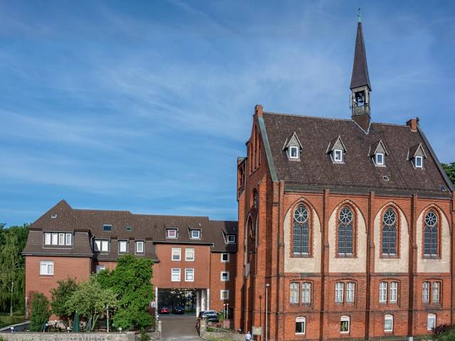 Das Gasthaus Klosterturm befindet sich in einem aktiven Kloster im Stadtteil Himmelsthür, nur 5 Minuten mit dem Velo von der historischen Altstadt von Hildesheim entfernt. Die Umgebung lädt ein zum Wandern und Velofahren in der reizvollen Landschaft Niedersachsens.