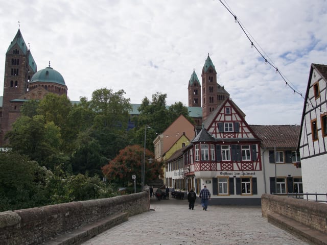 Das Gasthaus zum Halbmond befindet sich in Speyer, nur 50 m vom berühmten Speyerer Dom entfernt. Die Lage in einem historischen Fachwerkhaus verleiht dem Hotel einen besonderen Charme. Die malerische Fußgängerzone Maximilianstraße, mit ihren zahlreichen Geschäften und Restaurants, ist nur eine Gehminute entfernt. In der Nähe finden Sie auch das mittelalterliche Alte Tor und das Historische Museum der Pfalz. Der Bahnhof Speyer ist 1,5 km vom Hotel entfernt.