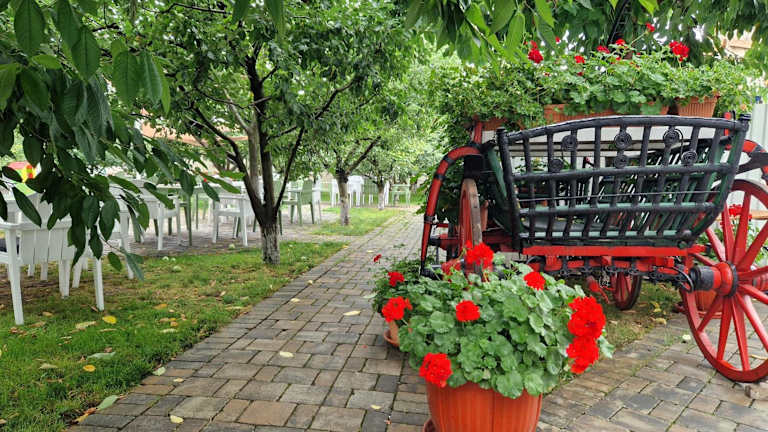 Im Restaurant des Gasthofs werden eine Vielzahl von rumänischen und ungarischen Spezialitäten angeboten. Morgens steht ein Frühstücksbuffet bis 11:00 Uhr bereit. Für persönliche Ernährungsbedürfnisse werden auf Anfrage Speisen angeboten.