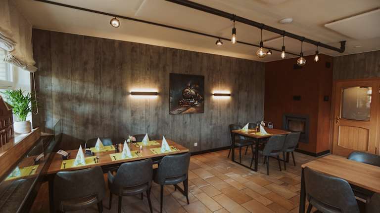 BAHNBRECHENDE LEIDENSCHAFT... ...war schon immer die wichtigste Zutat für unser Haus und in der Küche. Unsere Speisen sind frisch, bodenständig und kreativ. Wir legen viel Wert auf den Einsatz von regionalen und saisonalen Produkten. Individuelle deutsche Küche mit kleinen, aber feinen Ausflügen in die internationalen Gefilde ist das Geheimnis unserer abwechslungsreichen Speisekarte. Erleben Sie unserer "zügigen" Service. Unser Team wird von der Dampflok und anderen Eisenbahnen unterstützt und bringt Ihnen über unser Schienennetz "flüssige Fracht" an Ihren Tisch. Den Fahrplan bestimmen Sie. Das Entladen ist allerdings noch reine Handarbeit, die Sie selbst übernehmen.