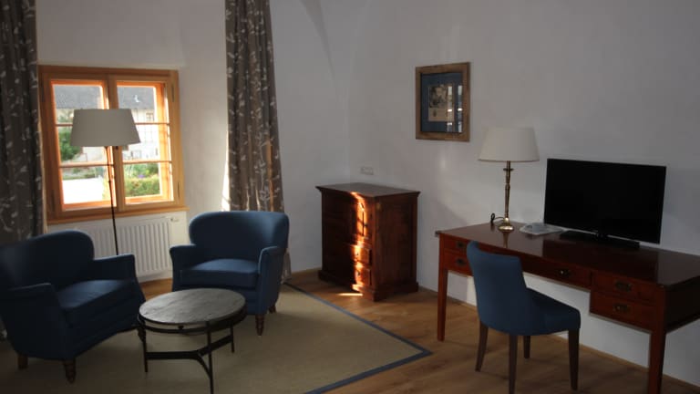11 komfortable zu 50m² große Zimmer und Suiten auf gehobenem Standard, Internet, Flachbild-TV, Schreibtisch, Sitzecke, Zimmersafe, Parkettboden, antike Bauernschränke, große Badezimmer mit Wanne mit Duschmöglichkeit oder mit Dusche, bequeme Boxspringbetten, kuschelige Handtücher, Handtuchwärmer (Heizperiode), Pflegeprodukte im Bad, Kosmetikspiegel, Klimaanlage im 2.OG.
