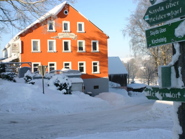 Gasthof Dittmannsdorf Unser Motto sich wohlfühlen, ausspannen und gut essen in familiärer Atmosphäre. Seit 1900 Gastwirtschaft mit Saal und Pension , wir laden ein in unseren gemütlicher Gasthof der zwischen Olbernhau und Sayda liegt genießen sie einige schöne Stunden oder ein bar erholsame Tage Urlaub. Wir haben zwar keinen Michelinstern, dafür aber eine gute erzgebirgische Küche mit Saison- angeboten und frischen Zutaten. Lassen Sie sich entführen in die Wilde Weiber Kräuterküche, wir laden regelmäßig zu Veranstaltungen mit kulinarischen Spezialitäten ein,
