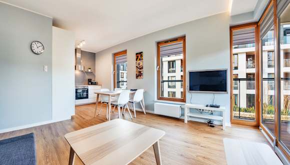 Das Apartamenty Sun & Snow Gdańsk Bursztynowa bietet gemütliche und gut ausgestattete Apartments mit Balkon für einen angenehmen Aufenthalt.