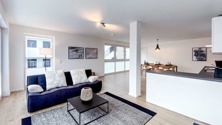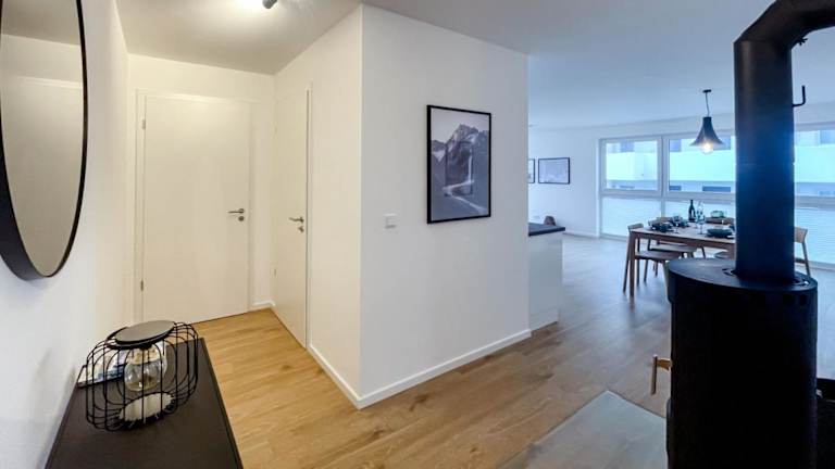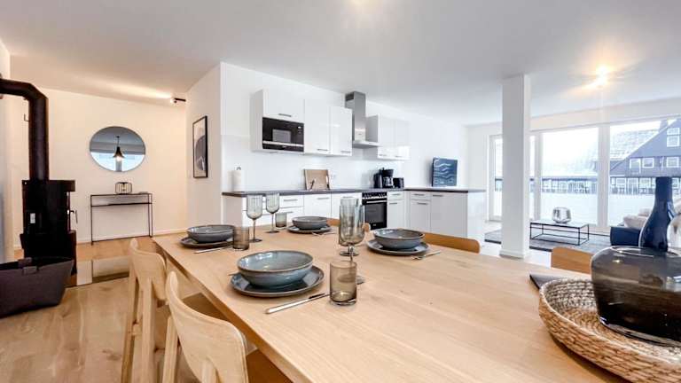 Die Ferienwohnung ist eingerichtet mit 2 Schlafzimmern und bietet eine voll ausgestattete Küche mit Kühlschrank, Geschirrspüler, Waschmaschine, Ofen und Mikrowelle. Zusätzlich steht den Gästen ein Flachbild-TV mit Kabelkanälen zur Verfügung. Handtücher und Bettwäsche werden bereitgestellt.