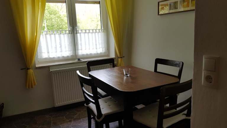 Die Ferienwohnung umfasst 1 Schlafzimmer und ein Wohnzimmer mit einem TV. Die Küche ist voll ausgestattet mit Kühlschrank und Ofen. Des Weiteren steht ein Badezimmer mit Dusche zur Verfügung.