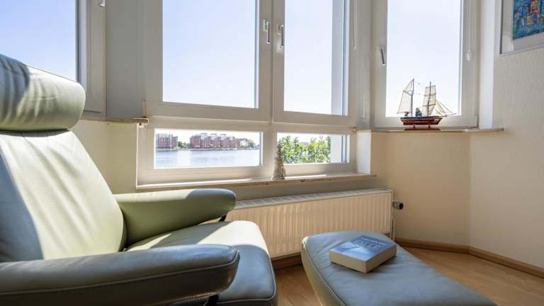 Die Ferienwohnung liegt direkt am Hafen und bietet einen schönen Meerblick. Der Südstrand befindet sich ungefähr 1,3 km entfernt.