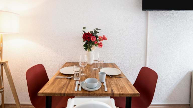 Alle Wohneinheiten verfügen über einen Sitzbereich mit einem Schlafsofa, einen Essbereich sowie eine voll ausgestattete Küche. Zur Ausstattung gehören diverse Kochmöglichkeiten, darunter ein Kühlschrank, ein Geschirrspüler, eine Herdplatte und ein Toaster.