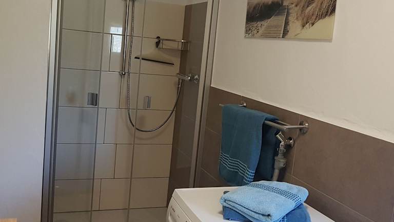 Die Ferienwohnung umfasst ein Schlafzimmer, ein Wohnzimmer, einen Fernseher sowie eine gut ausgestattete Küche mit Kühlschrank und Geschirrspüler. Es gibt zwei Badezimmer mit Dusche. Handtücher und Bettwäsche werden bereitgestellt.