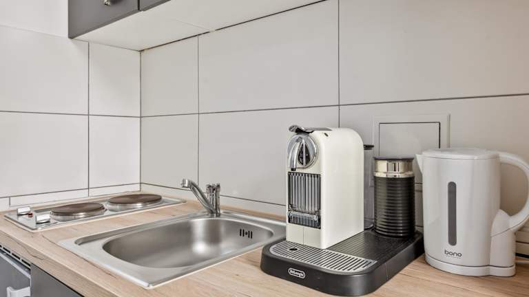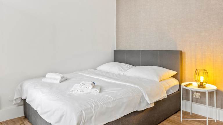 Die Ferienwohnung ist ausgestattet mit einem Schlafzimmer, einem Flachbild-TV sowie einer Küche. Handtücher und Bettwäsche werden bereitgestellt.