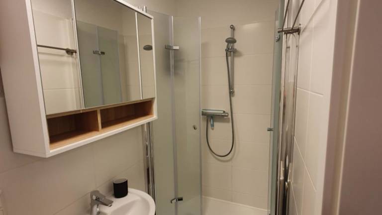 Die Ferienwohnung verfügt über eine gut ausgestattete Küche mit Kühlschrank, Geschirrspüler und Ofen. Es gibt ein Badezimmer mit Dusche und kostenlosen Pflegeprodukten. Die Wohnung hat zudem Stadtblick.