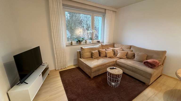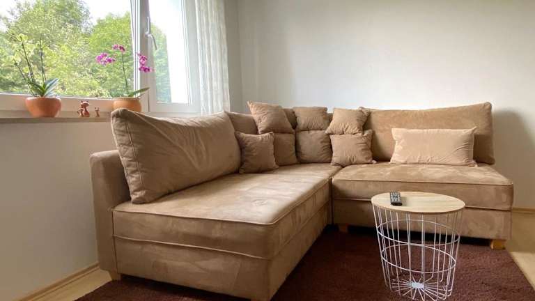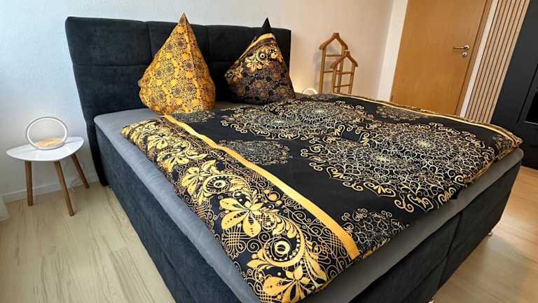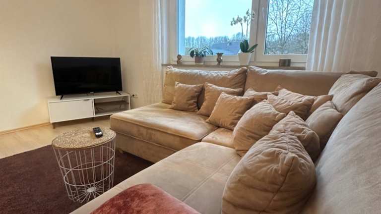 Das Gemütliche Appartement - WBS ist ein Erdgeschossapartment mit einem Schlafzimmer. Es verfügt über einen Flachbild-Sat-TV und eine voll ausgestattete Küche mit Kühlschrank und Backofen. Handtücher und Bettwäsche werden gestellt, um den Gästen einen komfortablen Aufenthalt zu ermöglichen. Mit Blick auf den Garten bietet das Apartment eine angenehme Atmosphäre für die Gäste.