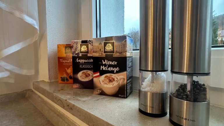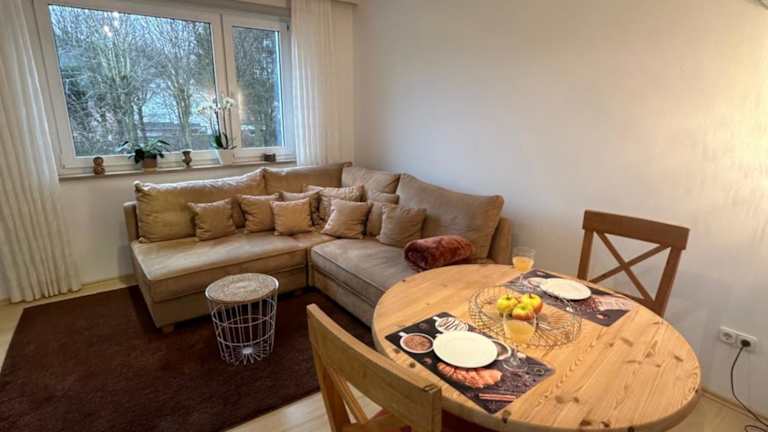 Das Gemütliche Appartement - WBS bietet eine voll ausgestattete Küche, in der die Gäste ihre eigenen Mahlzeiten zubereiten können. Es gibt auch Restaurants in der Umgebung, in denen die Gäste lokale Spezialitäten genießen können.