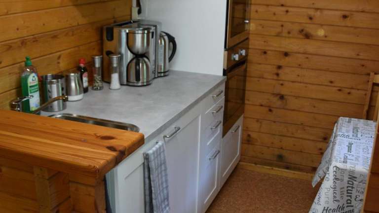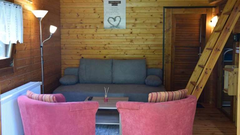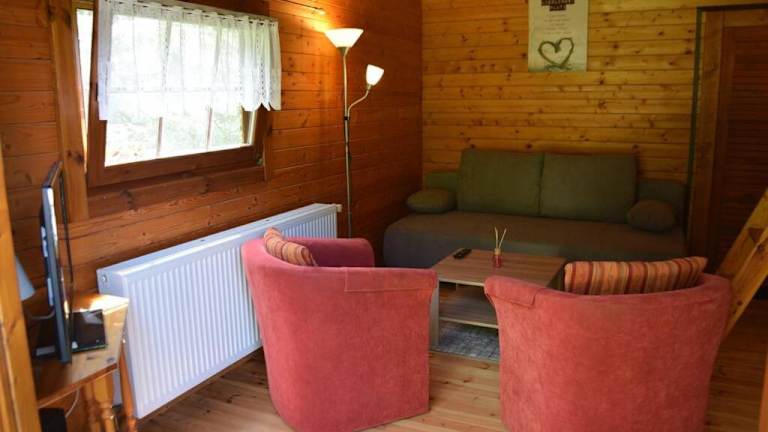 Das gemütliche Blockhaus verfügt über ein Schlafzimmer, ein Wohnzimmer und ein Badezimmer mit Dusche. Es gibt eine voll ausgestattete Küche mit Kühlschrank und Backofen. Handtücher und Bettwäsche werden gestellt, so dass Sie sich um nichts kümmern müssen. Das Ferienhaus bietet auch eine Terrasse und einen Garten mit Grillmöglichkeiten, wo Sie die Natur und die frische Luft genießen können.