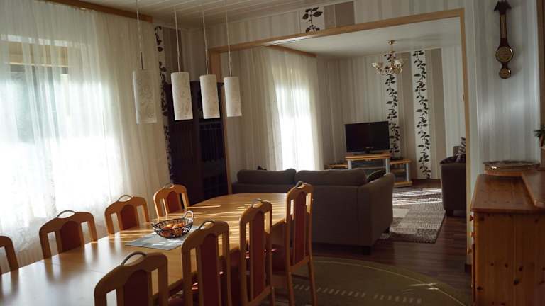 Das Gemütliche Haus mit Sauna im Voralpenland bietet einheimeliges Ambiente und eine ruhige Lage. Die Unterkunft umfasst einen Balkon und einen Garten sowie eine Terrasse mit Stadtblick. Sie wird privat geführt und ist für Familen bestens geeignet, auch wenn Feiern wie Junggesellenabschiede nicht erlaubt sind.