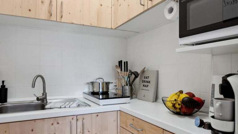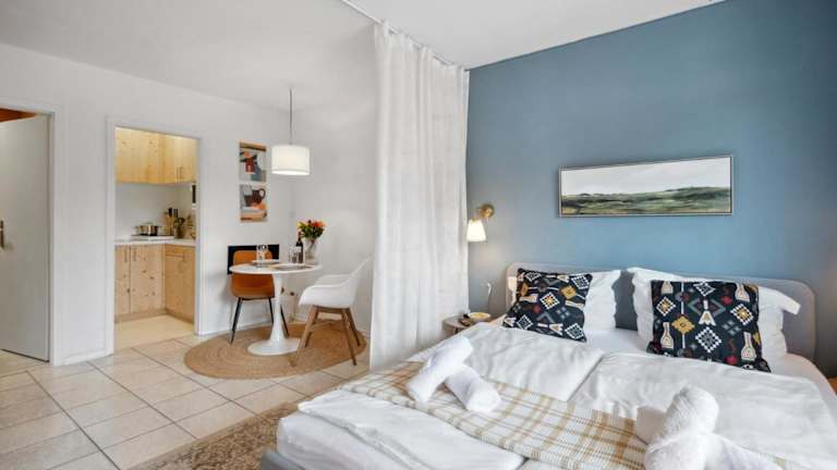 Das Apartment verfügt über ein Schlafzimmer und ist mit einem Flachbild-TV ausgestattet. Die voll ausgestattete Küche bietet einen Kühlschrank, Geschirrspüler, Waschmaschine, Mikrowelle und Herdplatte, was die Zubereitung von eigenen Mahlzeiten ermöglicht. Handtücher und Bettwäsche werden bereitgestellt.
