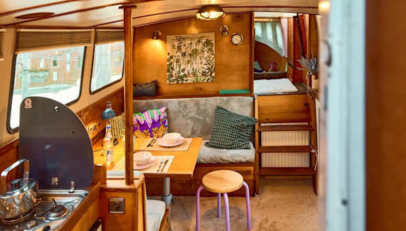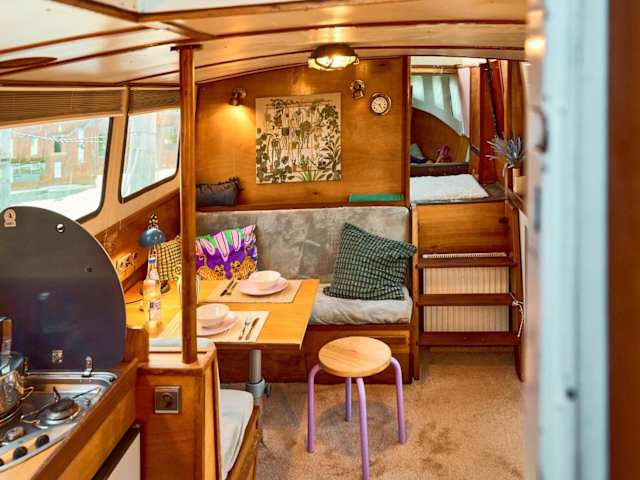 Das Gemütliche Wohnschiff bietet eine einzigartige Übernachtungsmöglichkeit auf einem Boot, das mit einer Gemeinschaftsküche ausgestattet ist. Die Atmosphäre ist heimelig und lädt zum Entspannen ein.