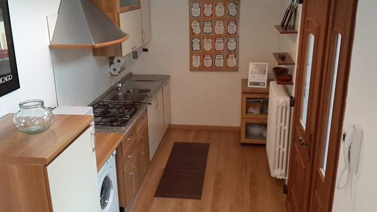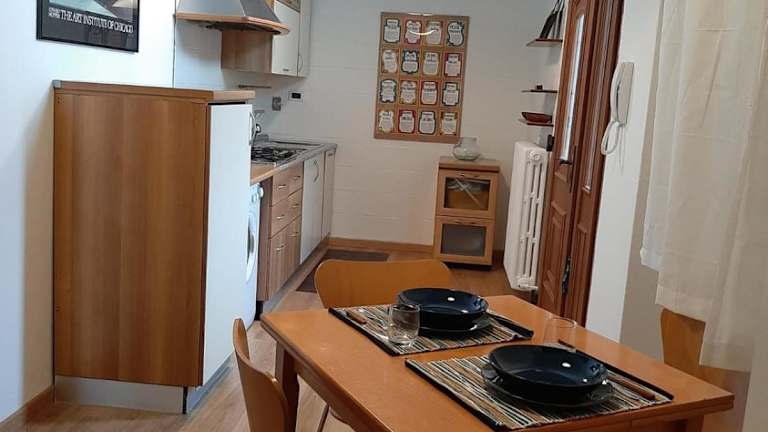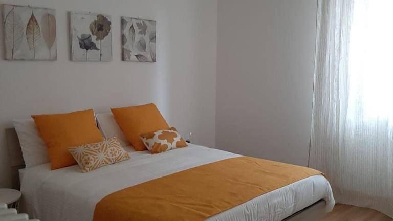 Die Ferienwohnung umfasst ein Schlafzimmer, ein Badezimmer mit Bidet und Dusche, sowie ein Wohnzimmer mit Sitzbereich und Essbereich. Handtücher und Bettwäsche werden bereitgestellt.