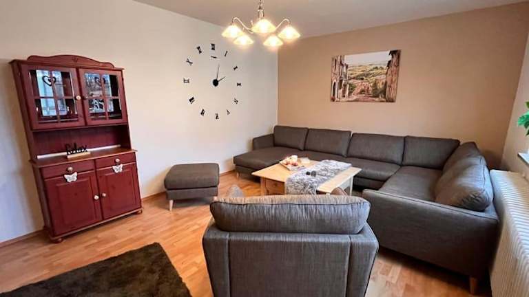Die Ferienwohnung bietet Platz in 3 Schlafzimmern sowie einem Wohnzimmer mit Flachbild-TV. Zudem sind ein Badezimmer mit Badewanne sowie Handtücher und Bettwäsche in der Ausstattung enthalten.