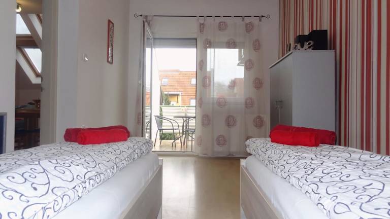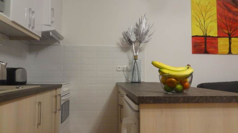 Die Ferienwohnung besteht aus einem Schlafzimmer, einem Wohnzimmer und einer voll ausgestatteten Küche mit Kühlschrank und Kaffeemaschine. Ein Badezimmer mit Badewanne und Haartrockner ist ebenfalls vorhanden. Zur Unterhaltung gibt es einen Flachbild-TV mit Satellitenkanälen, einen DVD-Player und einen CD-Player. Die zwei Einzelbetten können bei Bedarf zu einem Doppelbett zusammengestellt werden.