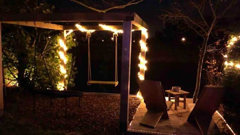Die Unterkunft Gezellige Pipo mit grosser Schommel am Wasser bietet eine heimelige Atmosphäre mit Annehmlichkeiten wie kostenlosen Velos, einem Garten und einer Terrasse.